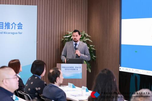尼加拉瓜驻华大使馆商务参赞温贝托·科拉多在会上发表专题讲话,从经贸政策、市场环境、重点投资领域等方面全面解读尼加拉瓜经贸发展机遇,针对当地光伏电站建设、热带农产品贸易、跨境运输通道打造等重点方向进行详细介绍,为中国企业出海尼加拉瓜提供了清晰的方向指引。