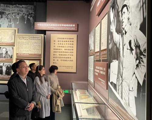 在中国人民抗日战争纪念馆,全体人员怀着崇敬之心参观了《为了民族解放与世界和平》主题展览。1.22万平方米的展厅内展出1525张照片和3237件文物,全景式展现了在中国共产党倡导建立的抗日民族统一战线旗帜下,海内外中华儿女以强烈的家国情怀,空前团结起来,谱写为国家生存而战、为民族复兴而战、为人类正义而战的雄壮史诗。多版本的《论持久战》;抗日根据地群众为部队缝制的草鞋;灯光、布景、音效再现气势磅礴的百团大战……一件件珍贵的文物和影像使大家更清晰地认识到,80年前的抗战胜利,是党带领人民在绝境中用智慧与勇气开辟的光明之路,这份胜利的荣光值得永远铭记。
