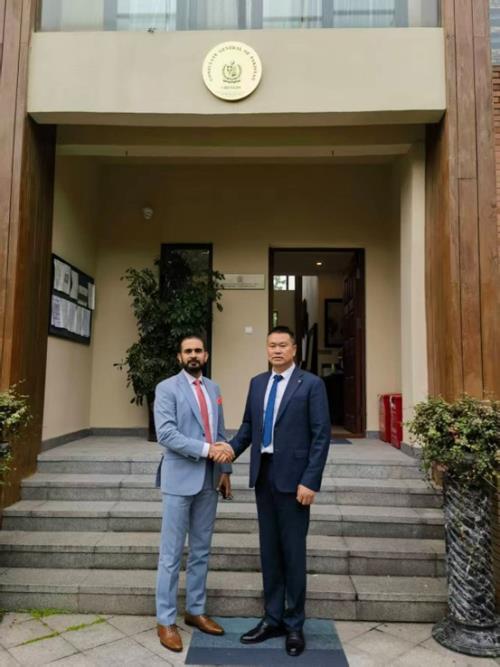 总领事Tanvir Ahmad Bhatti 巴基斯坦驻成都总领事馆总领事谭维尔先生对代表团的到访表示欢迎。他提到:“巴中友谊比山高、比海深。总领事馆高度重视期待能携手与中欧协会成都办事处同巴基斯坦驻中国大使馆签署战略合作备忘录,双方创新合作模式,鼓励更多中国企业赴巴投资兴业,同时也将促进巴基斯坦优质产品进入中国市场。”
