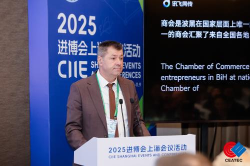 作为进博会上海会议活动边会,论坛汇聚了中国与欧洲的多国政府代表、行业领袖与企业嘉宾,包括中国欧洲经济技术合作协会常务副会长兼秘书长陈璟玥、波黑联邦副总统雷菲克·兰多(Refik Lendo)、匈牙利驻上海总领事馆商务领事戈乐左(Levente G?NCZ?)、波黑外贸商会主席阿赫梅特·埃格里奇(AHMET EGRLIC)、福建省商务厅副厅长林本东、中国-东盟博览会秘书处秘书长王继才、江苏省南通市崇川区市北高新区党工委副书记吴太宾,欧洲企业基伊埃(GEA)工程技术公司区域销售经理杨燕、赫宝嘉(HerbaPlus AS)海外市场总监李中杰、泛亚生物医药股份有限公司副总裁王佳琪女士等嘉宾。围绕智能制造、绿色科技、数字经济、生命健康等关键领域展开深度对话,共同探索中欧合作新路径。