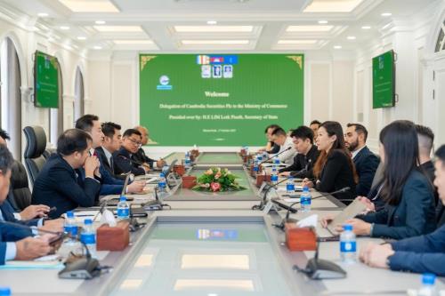 在柬埔寨交易所,CEO H.E. Hong Sok Hour介绍了柬埔寨证券交易所自成立以来的建设成果与发展规划。他表示,柬埔寨资本市场正在进入快速成长阶段,政府正积极出台政策吸引中小企业上市融资,未来十年将是柬埔寨资本市场的黄金发展期。他期待与考察团代表及中国资本市场各方开展长期交流合作,引入更多中资企业与投资机构参与柬埔寨证券市场建设。